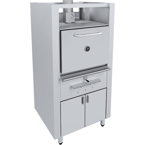 Производитель: ПИЩТЕХ Страна: Россия Артикул: ПМ-0,25 Габариты (ДхШхВ), мм: 782х787х1630 (1650)мм Гарантийный срок: 12 мес. Масса без упаковки, кг: 210 Масса в упаковке, кг: 237.5 Гриль-мангал ПИЩТЕХ ПМ-0,25 (НА ПОДСТАВКЕ, 782х787х1630 (1650)мм) Гриль-мангал предназначен для жарки мяса, овощей, грибов и др. на углях. Он совмещает в себе преимущества закрытой печи и мангала. Работает только на древесном угле. Можно использовать в помещениях только совместно с гидрофильтром. Гриль-мангал имеет вид герметичной камеры. Камера сделана из жаростойкой стали толщиной 5 мм. Лицевая рамка сделана из жаростойкой нержавеющей стали толщиной 5 мм. Внутри камеры имеются направляющие для решетки и подставки под шампура. В нижней части камеры установлен ящик для золы. Выше ящика есть дефлектор подачи воздуха, поворачивая ручку, можно добавлять или убавлять приток воздуха. Наверху на камере есть шибер с искрогасителем. Шибер применяется для регулировки воздуха. Искрогаситель имеет лабиринтную форму для задержания искр и копоти. Жарочная камера установлена на сварном каркасе и обшита нержавеющими панелями. На передней части двери имеется термометр, который показывает температуру в камере. Для транспортировки гриль-мангал установлен на деревянный поддон, обтянут пленкой-стрейч, упакован в картонный короб и оббит деревянным ящиком. Решетка, ограждение углей уложены во внутрь.