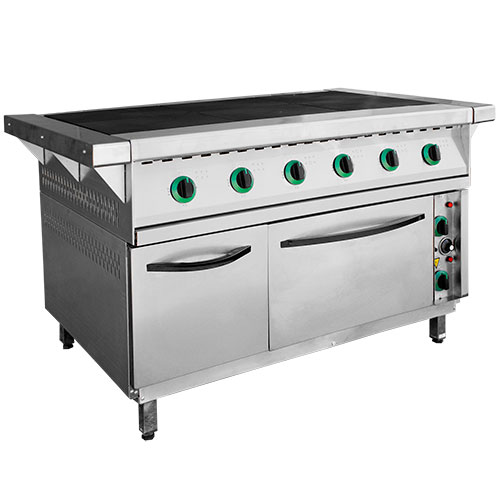 Производитель: ПИЩТЕХ Страна: Россия Артикул: ПЭП-0,72-ДШ-01 Входное напряжение, В: 380 Габариты (ДхШхВ), мм: 1265(1475)х850(895)х860(880) Габариты в упаковке (ДхШхВ), мм 1 место: 1310х950х1000 Количество конфорок: 6 Количество противней (уровней): 4 Масса без упаковки, кг: 178 Масса в упаковке, кг: 202 Материал изготовления: комбинированный (нерж. сталь+сталь оцинкованная) Наличие духового шкафа: Да Наличие конвекции: Нет Номинальная мощность конфорки, кВт: 3 Номинальная мощность, кВт: 22.8 Плита электрическая 6-ти конфорочная предназначена для тепловой обработки полуфабрикатов в наплитной посуде, приготовления первых, вторых и третьих блюд (варки, жарки, тушения и пассерования) на предприятиях общественного питания. Корпус плиты ПЭП-0,72-ДШ-01 выполнен - лицевая часть из нержавеющей стали, боковые и задняя часть из оцинкованной стали. Плита оснащена шестью чугунными конфорками общей площадью 0,72 м2., размер каждой 417х295 мм., мощность одной конфорки 3 кВт., максимальная температура рабочей поверхности не более 480 градусов. Плита имеет жарочный шкаф на 4 уровня для противней/гастроёмкостей GN 1/1 (530х470 мм). Пределы регулирования температуры жарочного шкафа, ºС: +45 - +270(±10). В комплекте 2 противня из из черного метала 530х470х30 мм. Жарочный шкаф имеет раздельную регулировку мощности верхнего и нижнего тенов. Шкаф автоматически поддерживает заданную температуру от 50 до 300 С. Жарочный шкаф оснащен аварийным предохранителем от перегрева свыше 300 С. Плита оснащается регулируемыми по высоте ножками. Поставляется в собранном виде на поддоне. Упаковка гофрокартон.